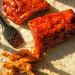 • Generously brush both sides of the ribs with the sauce. Bake in the oven uncovered for 5-10 minutes (keep a close eye so the sauce doesn’t burn).