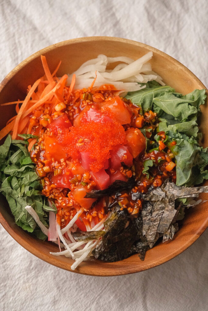 Every summer, I post a cold noodle recipe, so how can I not post one this year? THIS, is the cold noodle dish that I’ve been enjoying all the time this summer. It’s super easy to come together, it’s addicting, AND I can chop up a lot of toppings ahead of time so that I can always take them out of the fridge and have this dish come together very quickly.