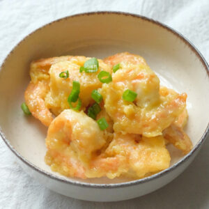 4. Using a clean skillet/wok, add in 1 tbsp of neutral oil once the skillet/wok has heated. Add in the fried shrimps and the sauce, and combine everything together, coating each shrimp with the sauce. Remove and garnish with chopped green onions. Serve and enjoy!