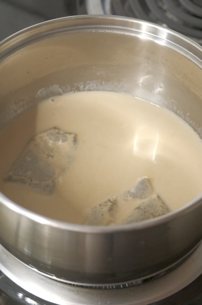 3. Squeeze out all the liquid from the earl grey tea bags into the milk. DON’T skip this step — that liquid absorbed by the tea bags have the MOST flavour.