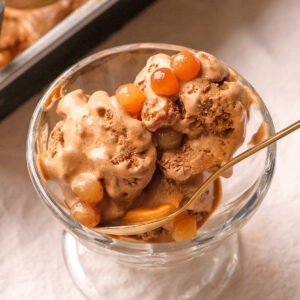 This ice cream is super creamy, and has intense Hong Kong milk tea flavours. I like my milk tea very strong (tea is more important to me over sugar), that’s why I steeped a lot of Ceylon tea for this recipe in order for the flavours to come through in the ice cream. Ice cream that lacks flavour is definitely a no no for me. I highly recommend refrigerating the milk tea mixture overnight, to intensify the flavours. I tried making it all in the same day, but the flavour is just not as strong compared to if I had let it steep in the fridge overnight.