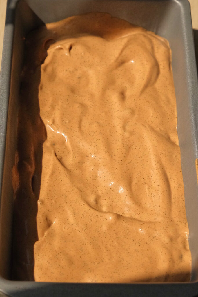 - Pour the mixture into a loaf pan or airtight container and freeze for 4-6 hours, or overnight.