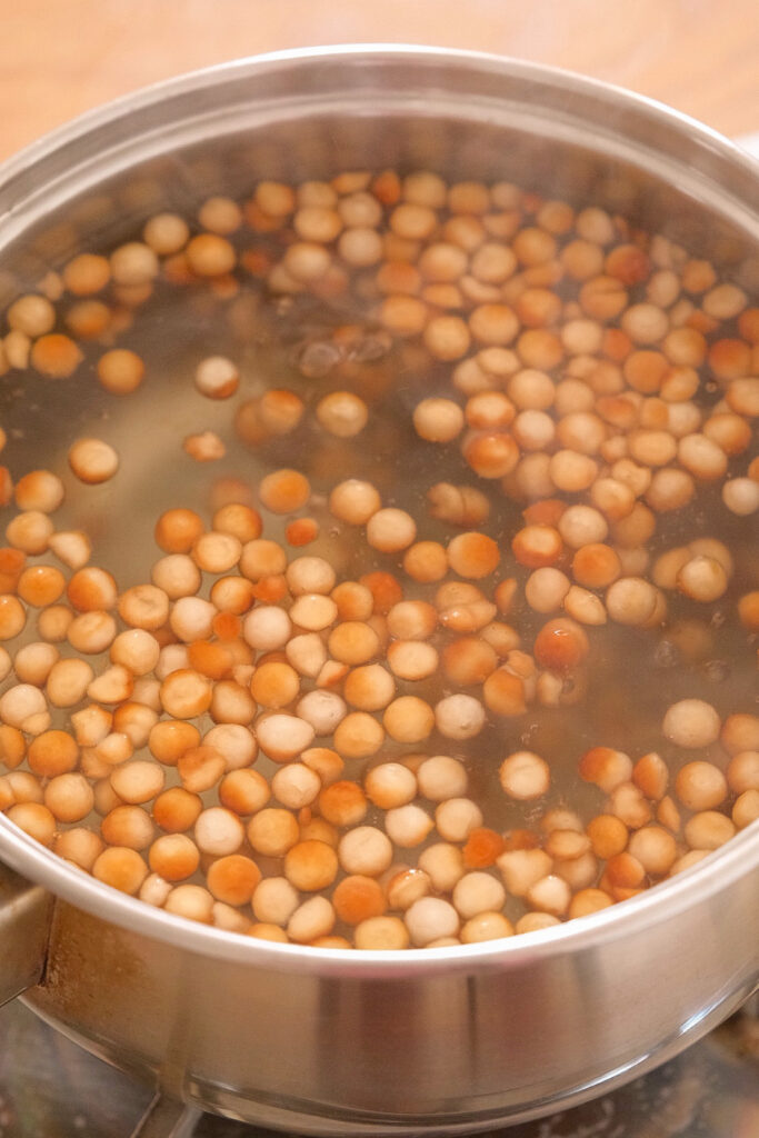 - In a saucepan, combine the brown sugar and a little water together and bring to a simmer until the sugar melts, to make brown sugar water. Turn off the heat and add in the cooked pearls and mix everything together. You can let it sit for a few minutes to let the pearls soak up everything. Your pearls are now ready to use.
