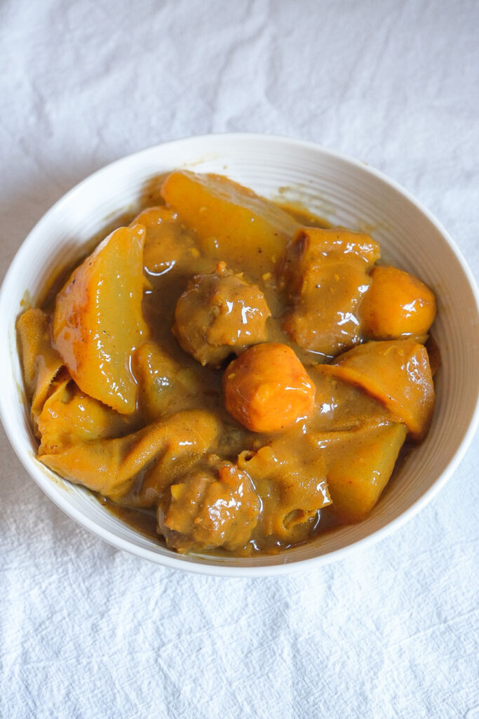 Curry Fishballs are Hong Kong’s most iconic street food. Springy fishballs in an addictive curry sauce, what’s not to love about it? I have many memories of eating curry fishballs on the streets of Hong Kong growing up, under that scorching sun, sweating while enjoying those delicious fishballs. Still totally worth it. Some stalls may provide the option of adding white radish (daikon), and pork skin. Today, I decided to do a curry fishball medley, by adding white radish, beef balls, and beef omasum (my absolute favourite).