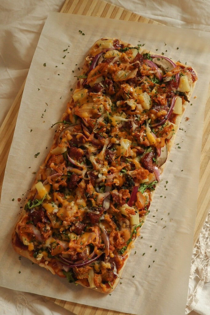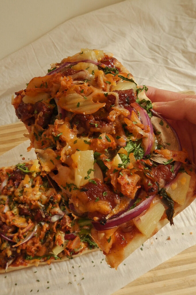 Wow, KBBQ meats on a pizza? Seriously one of my guilty pleasures. And yes, PINEAPPLE DOES GO ON PIZZA (sorry but not sorry). The sweetness of the pineapple balances so well with the savoury meat. Try it NOW, I’m telling you. You won’t regret this.