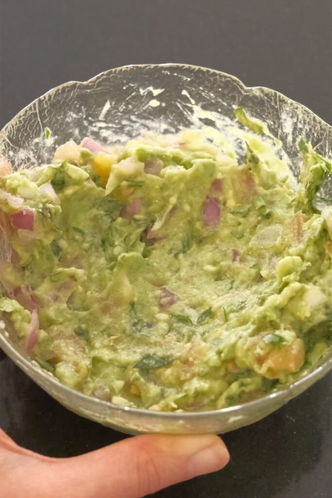 - Remove from the oven, and top with the kimchi, gochujang mayo, guacamole, toasted sesame seeds, green onion and cilantro. Enjoy immediately!
