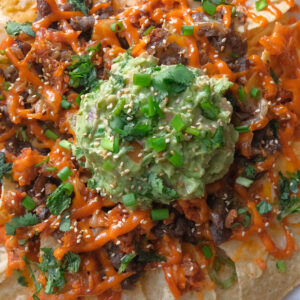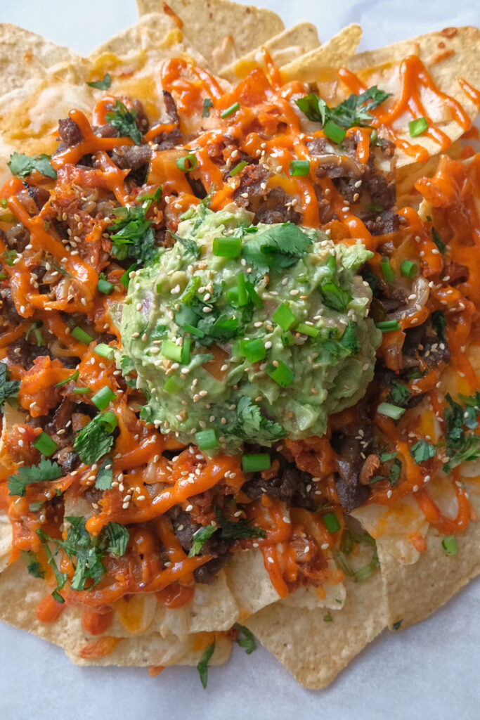 These will be the best nachos you’ve ever had in your life. Quick and easy bulgogi with grilled kimchi, and then topped with gochujang mayo and some fresh guacamole. Unbelievably addicting and full of FLAVOUR.