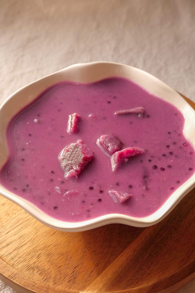 There are times when I feel cold but still have that craving for something sweet, but not wanting to eat cold desserts. This purple yam sago with coconut milk is always the answer to my problems. It’s a type of tong shui (糖水), which is a term for sweet hot soup that’s served as a dessert in Cantonese cuisine. Hot desserts are actually very common in Cantonese cuisine, especially during the cooler days.