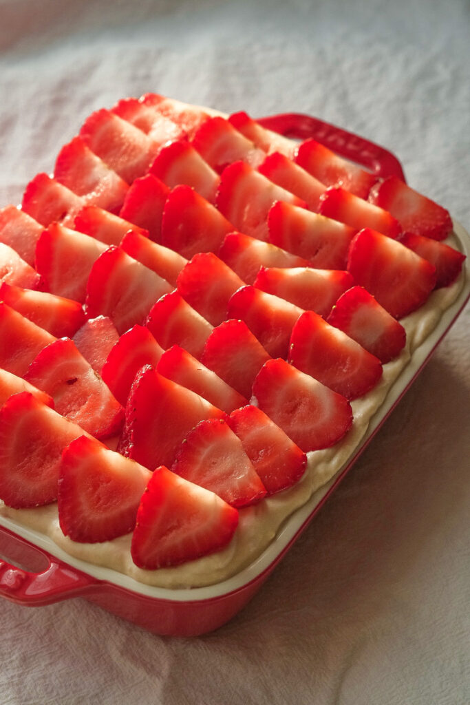 The perfect and most aesthetic dessert for this summer. I’m using Staub’s 7.5” x 6” ceramic baking dish to make this dessert. Not only is it good for oven baked and roasted dishes, it’s also suitable for desserts – perfect for my aesthetic style because of the beautiful glass porcelain-enamel finish.
