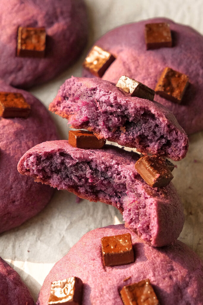 The perfect cookies. Soft, chewy, crispy edges, stuffed with real purple yam filling, and has a vibrant purple colour.